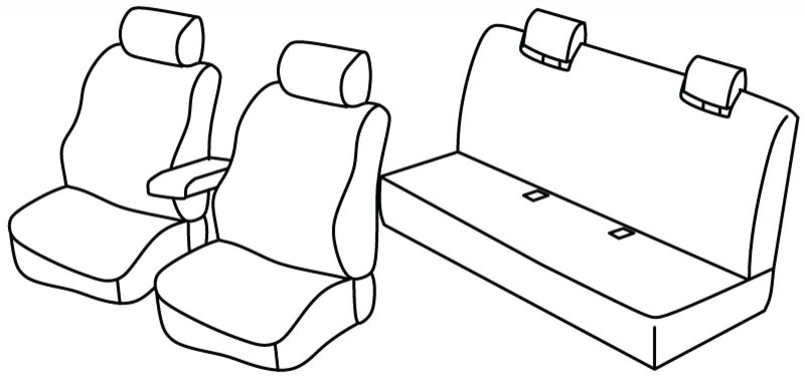 front seats normal, front armrest freestanding (not connected to front seats), rear upper and bottom seat in one piece, rear headrest are submersible
