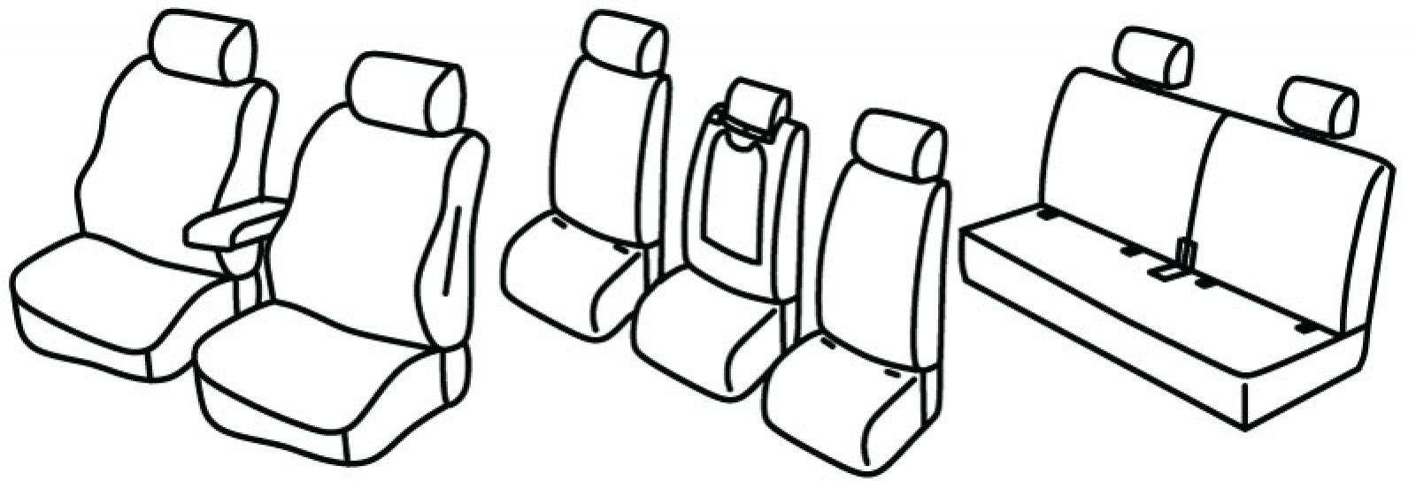 3 seat rows, 1st row: front seats normal, front headrests cannot be removed, front armrest freestanding (not connected to front seats), front seats have plastic backside, front upper seats have usb slot at backside, 2nd row: rear upper and bottom seat foldable (1/3 + 1/3 +1/3), rear armrest, middle rear headrest is submersible, third (middle) seat belt in rear middle upper seat, 3rd row: rear upper seat foldable (1/2 + 1/2), rear bottom seat in one piece (1/1), isofix