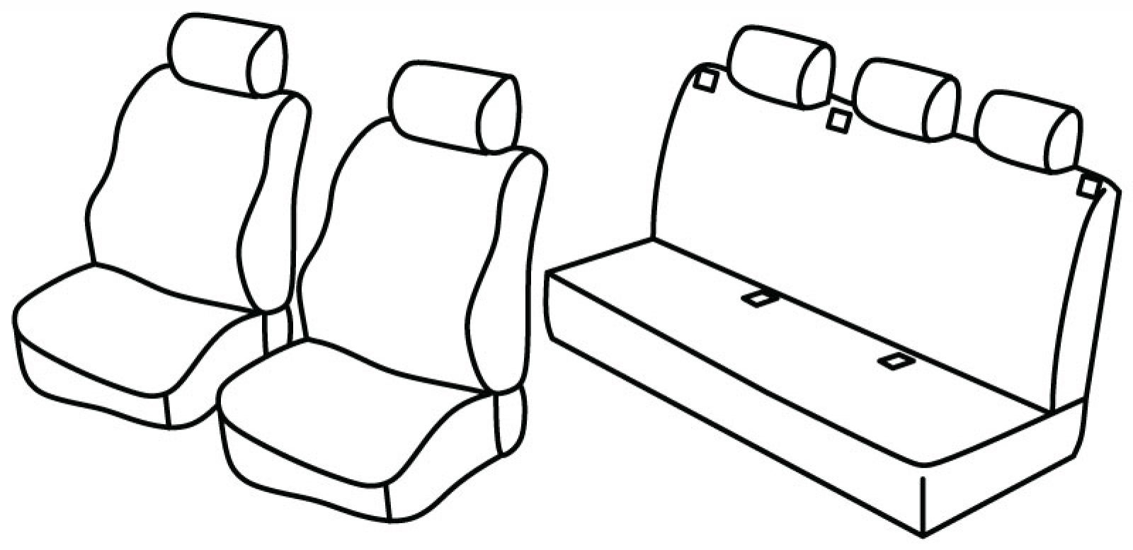 front seats normal, rear upper and bottom seat in one piece (1/1), headrests are normal, third (middle) seat belt in rear upper seat