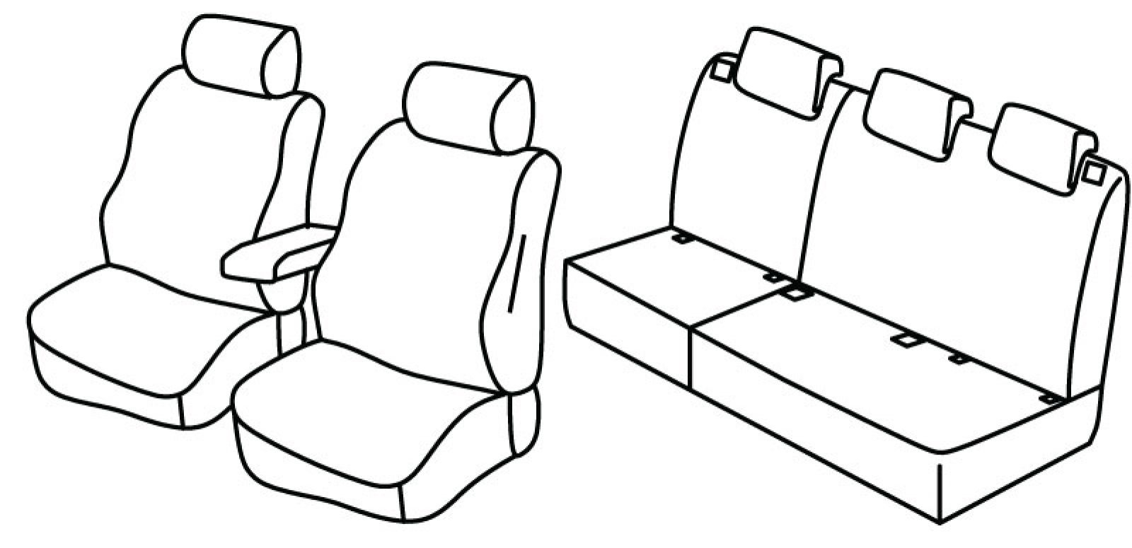 front seats normal, airbag, front headrests are normal, rear upper and bottom seat foldable (1/3 + 2/3), isofix connected to seat cover, rear headrests are lowered