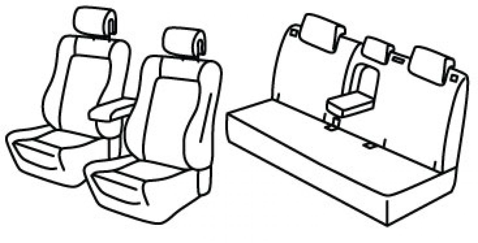 front seats sporty style, airbag, front headrests are foldable (sandwich), front armrest freestanding (not connected to front seats), rear upper seat foldable (1/3 + 2/3), rear bottom seat in one piece (1/1), third (middle) seat belt in rear upper seat, rear armrest, rear headrests are lowered (2+1), isofix connected to seat cover