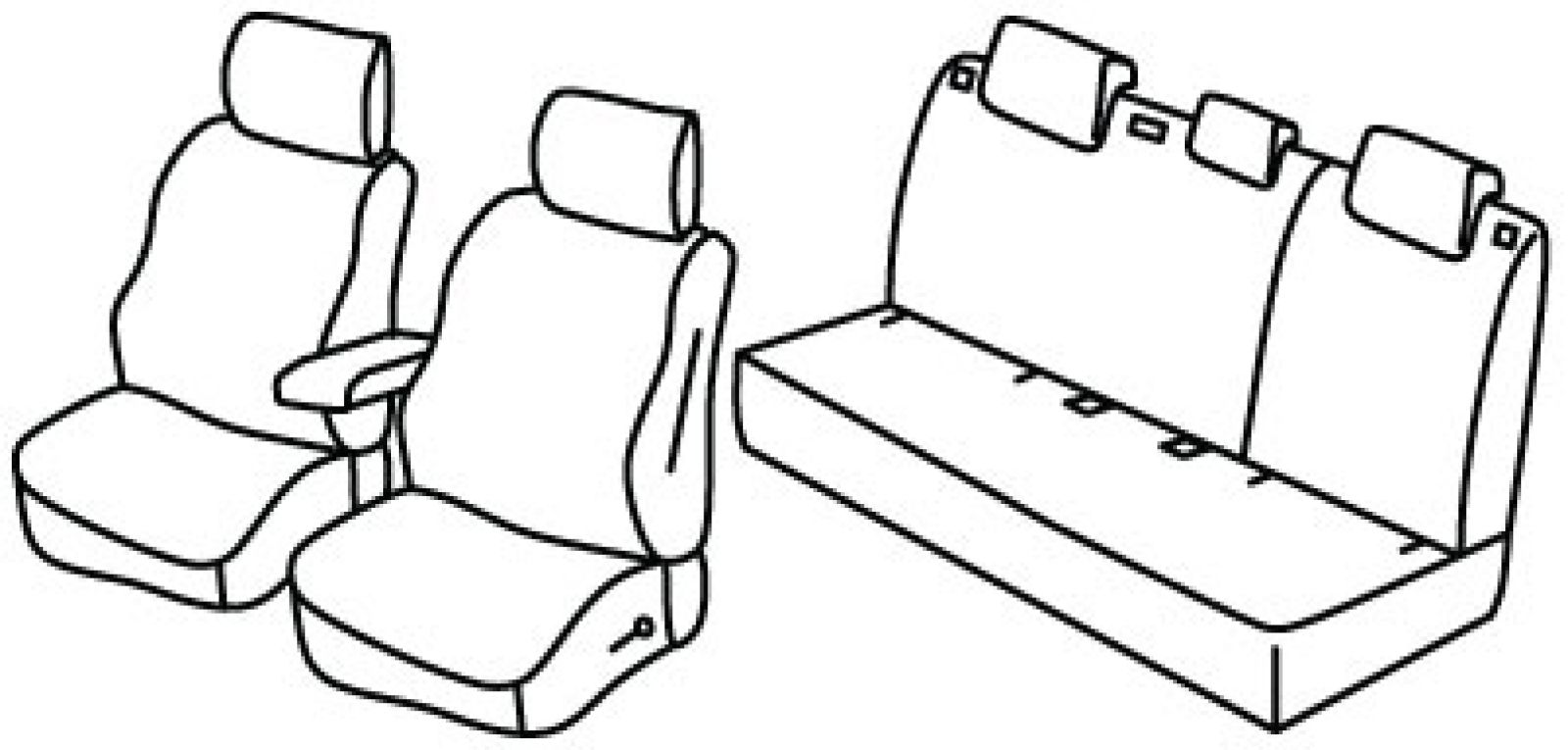 front seats normal, driver's seat has a handle on door side, airbag, front armrest freestanding (not connected to front seats), rear upper seat foldable (2/3 + 1/3), rear bottom seat in one piece (1/1), third (middle) seat belt in rear upper seat, isofix connected to seat cover, rear headrests are lowered (2+1)