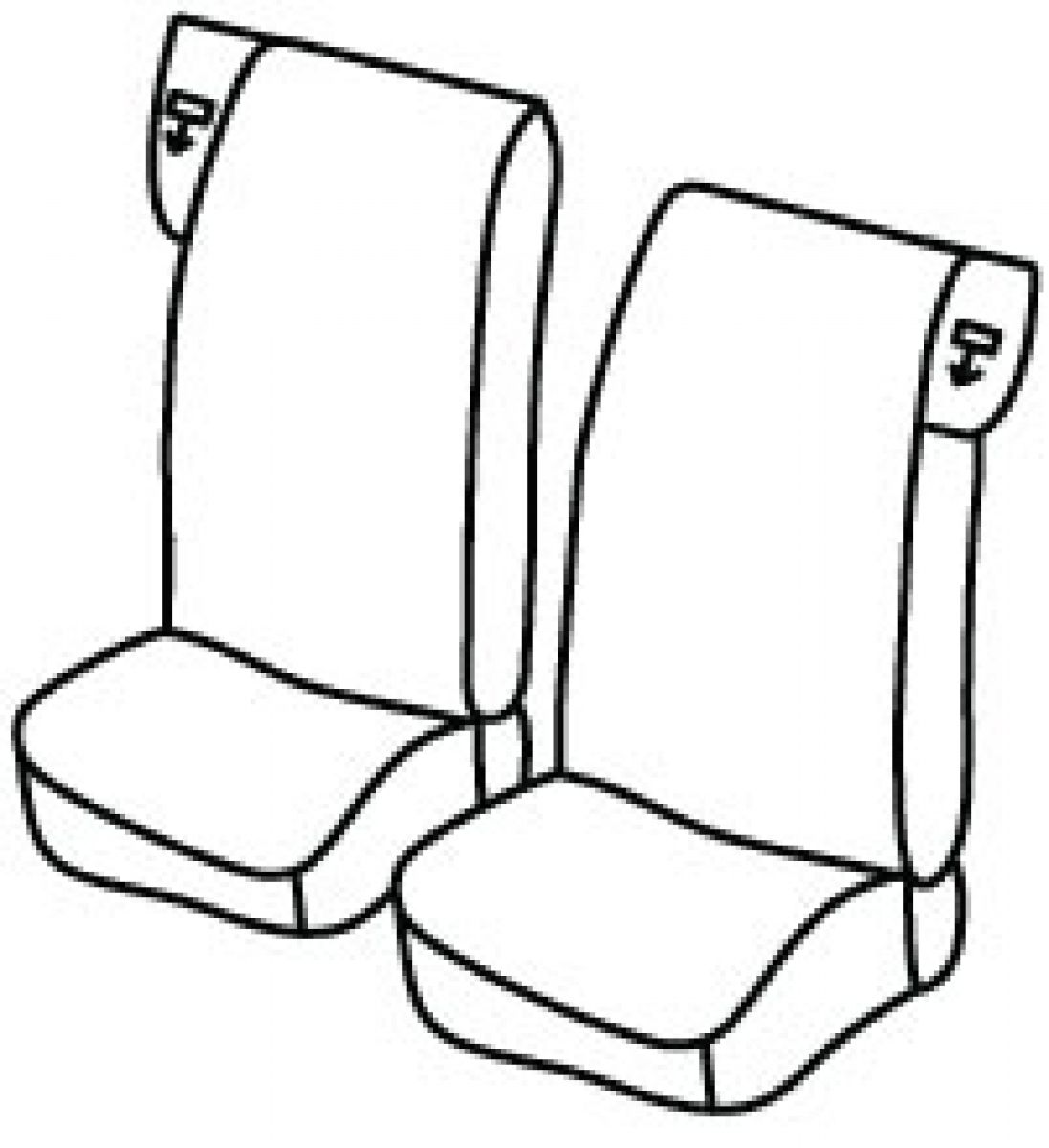 front seats in one piece with headrests, driver's seat belt in upper seat, front passenger seat belt in upper seat