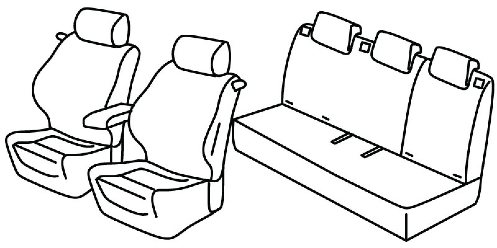 front seats recaro (sport style), airbag,handles for folding upper seat , front headrests are normal, front armrest freestanding (not connected to front seats), rear upper seat foldable (2/3 + 1/3), rear bottom seat in one piece (1/1), isofix connected to seat cover, third (middle) seat belt in rear upper seat, rear headrests are lowered