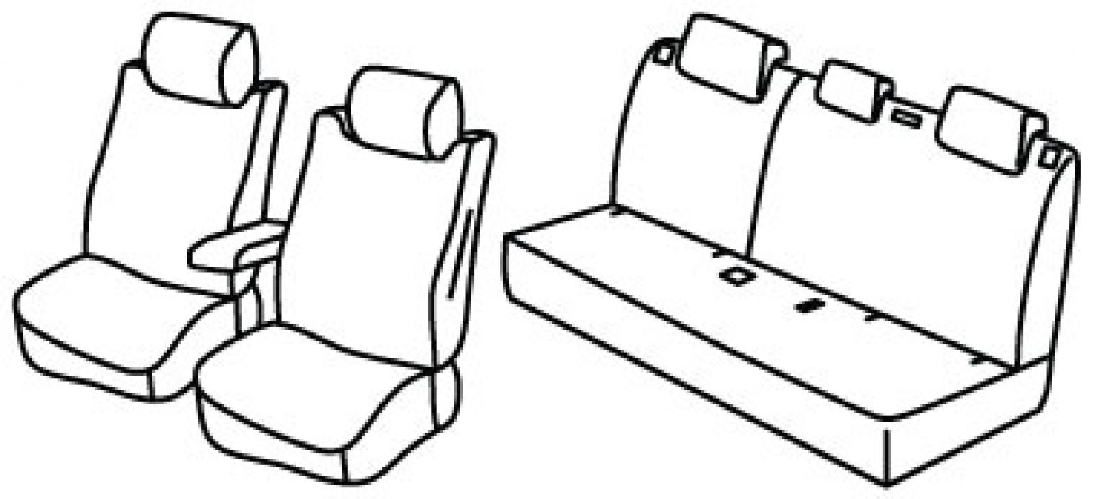 front seats normal, airbag, front armrest freestanding (not connected to front seats), rear upper seat foldable (1/3 + 2/3), rear bottom seat in one piece (1/1), third (middle) seat belt in rear upper seat, isofix connected to seat cover