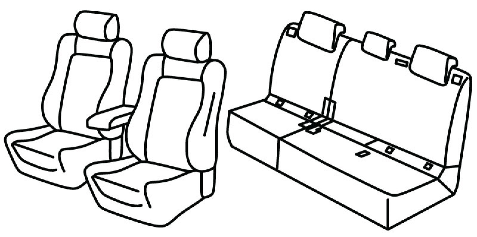 front seats sporty style, front armrest freestanding (not connected to front seats), airbag, rear upper and bottom seat foldable (1/3 + 2/3), isofix connected to seat cover, rear headrests are lowered (2+1), third (middle) seat belt in rear upper seat
