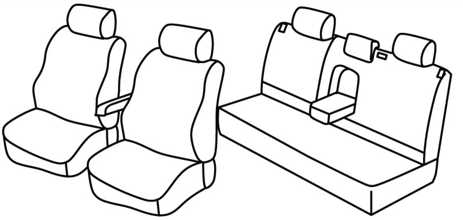 front seats normal, rear upper seat foldable (1/3 + 2/3), rear bottom seat in one piece (1/1), rear armrest, front armrest connected to driver seat, third (middle) seat belt in rear upper seat, rear headrests 2 normal + 1 lowered