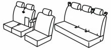 front armrest connected to driver seat, double upper seat in one piece, front passenger bottom seat foldable (1/2 + 1/2), middle passanger upper seat has built-in armrest, front passenger seat belt in upper seat