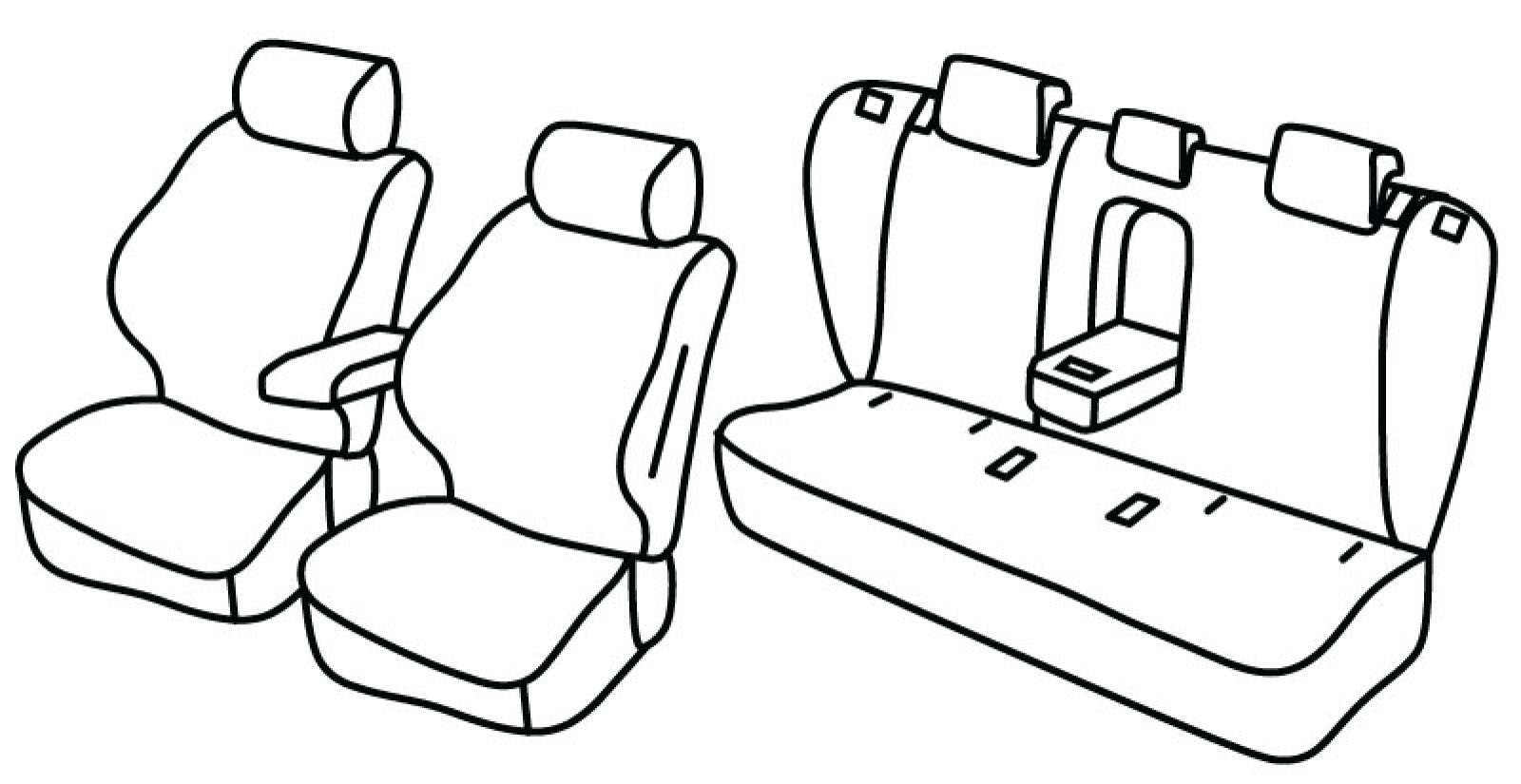 front upper seats sporty style,front bottom seats normal, front armrest freestanding (not connected to front seats), airbag, front headrests are normal, rear headrests are lowered (2+1), rear armrest,in rear armrest integrated cup holder, rear upper seat foldable (1/3 + 2/3), rear bottom seat in one piece (1/1), rear poles on sides, seat belts integrated in rear poles, isofix connected to seat cover