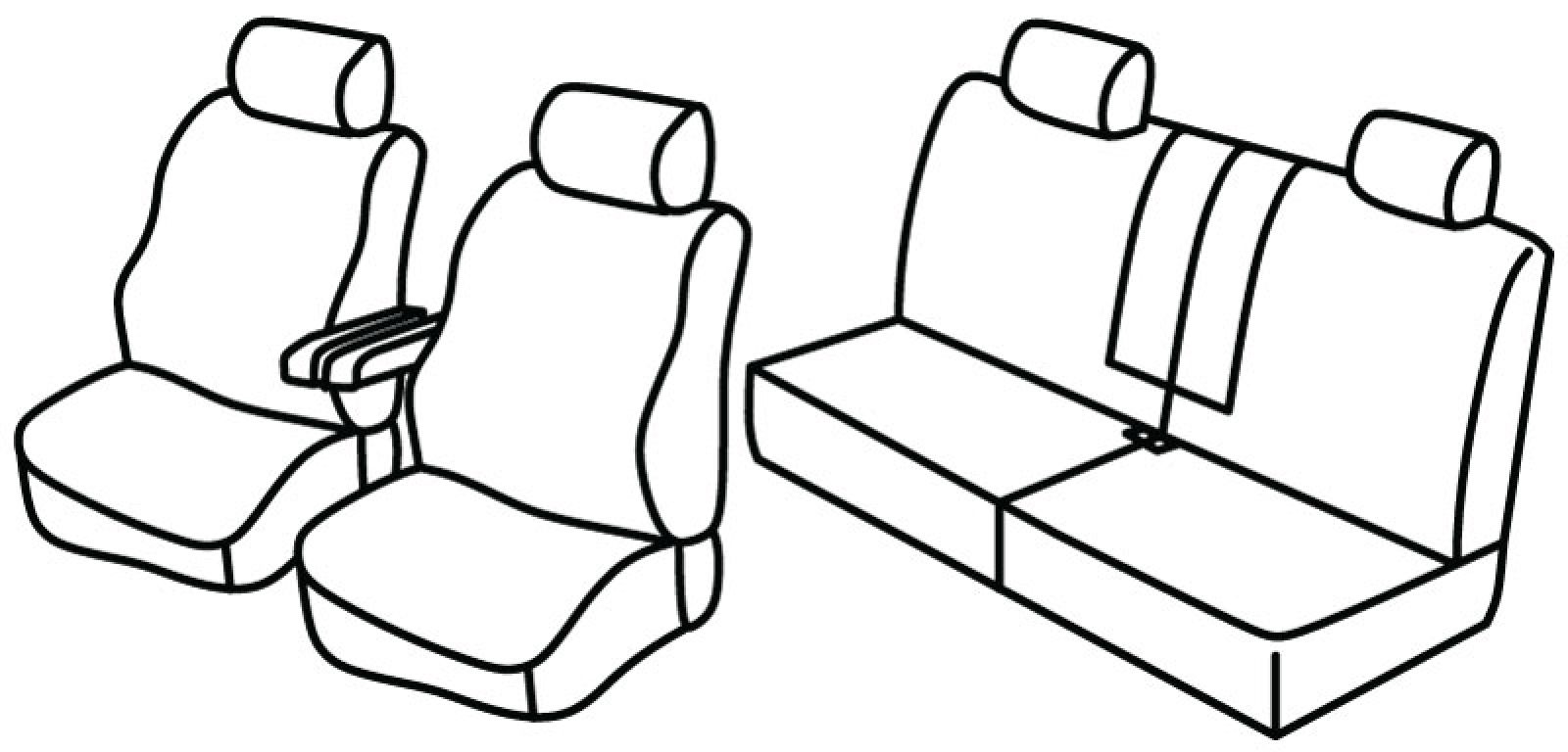 front seats normal, 2 front armrest connected to front seats, rear upper and bottom seat foldable (1/2 + 1/2), 4 headrests, 2 rear armrests connected to rear upper seat
