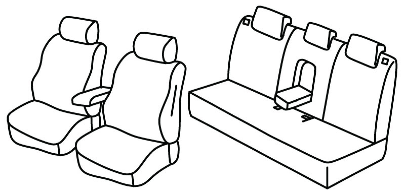 front upper seats sporty style, front bottom seats normal, front armrest freestanding (not connected to front seats), front headrests are normal, 3 airbags (driver seat on both sides, passenger seat on side to the door), rear upper seat foldable (1/3 + 1/3 +1/3), rear bottom seat in one piece (1/1), rear armrests integrated in rear upper seat, rear headrests are lowered (2+1)