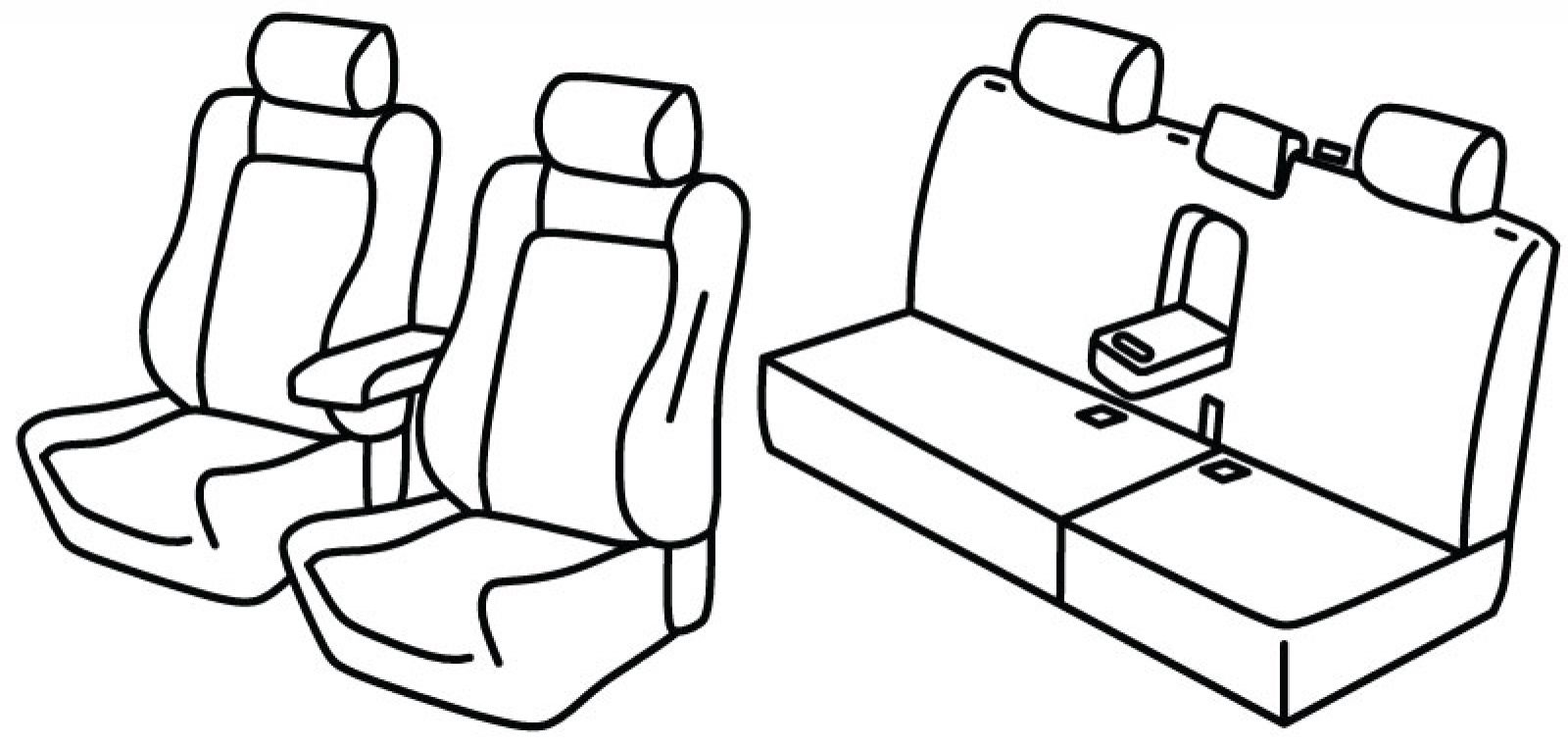 front seats sporty style, front armrest freestanding (not connected to front seats), airbag, rear upper seat in one piece (1/1), rear bottom seat foldable (2/3 + 1/3), rear armrest, third (middle) seat belt is not connected to the rear upper seat, rear headrests 2 normal + 1 lowered