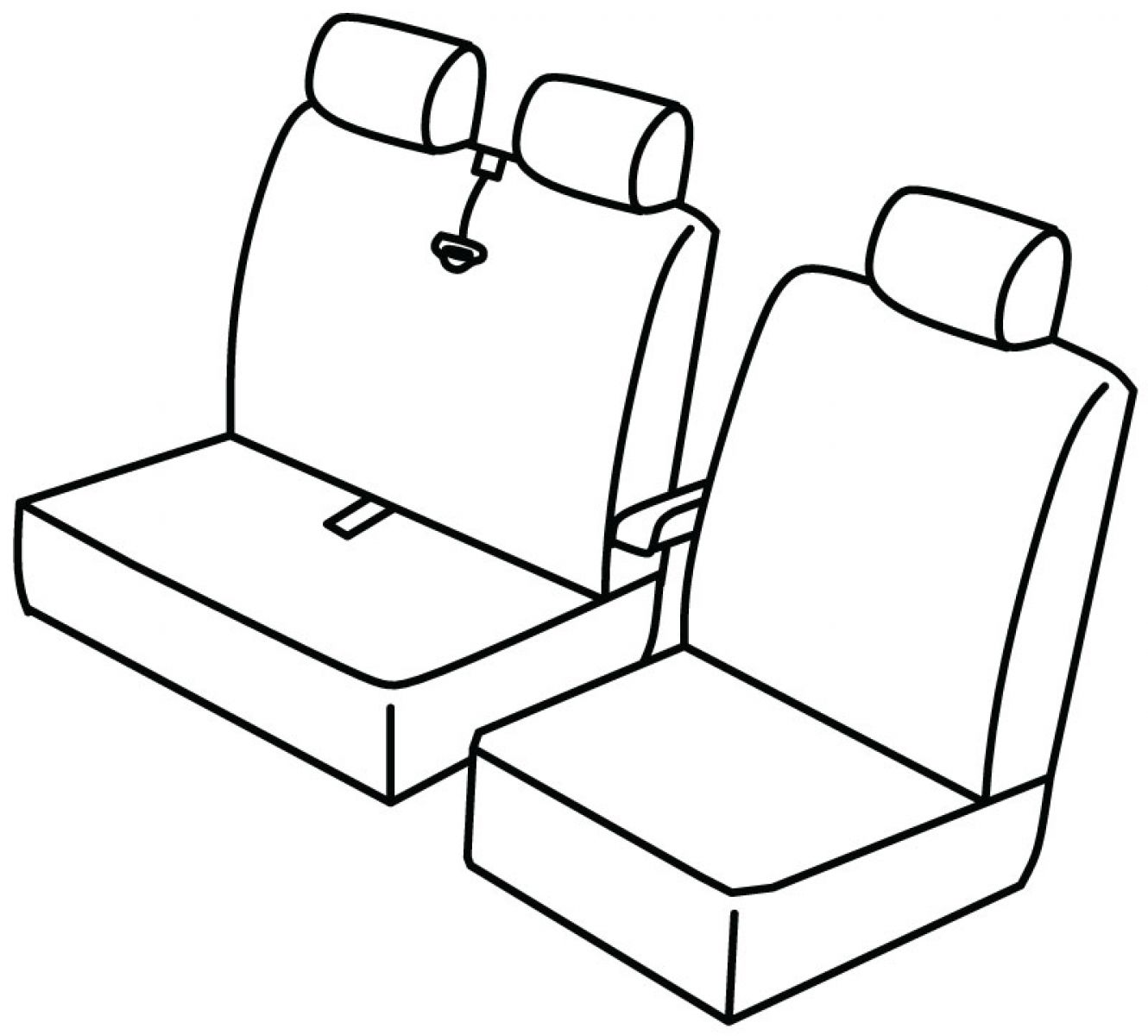 1+2, front headrests cannot be removed, upper and bottom double seat in one piece, seat belt in middle of double upper seat, front armrest connected to driver seat