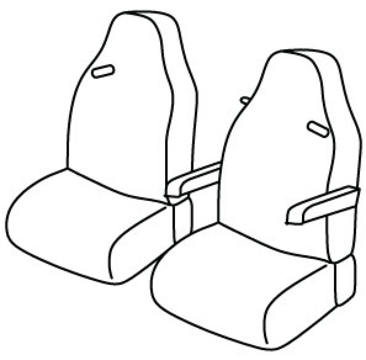 front seats in one piece with headrests, driver's seat belt in upper seat, front passenger seat belt in upper seat, 2 front armrests connected to driver seat, handle for folding driver upper seat
