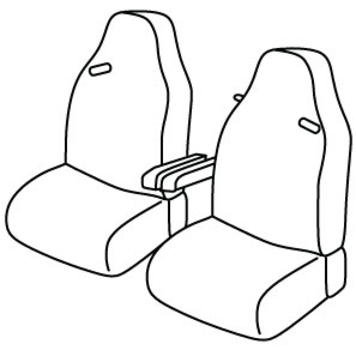 front seats in one piece with headrests, driver's seat belt in upper seat, front passenger seat belt in upper seat, front armrest connected to driver seat inside, front armrest connected to passenger seat inside, handle for folding driver upper seat
