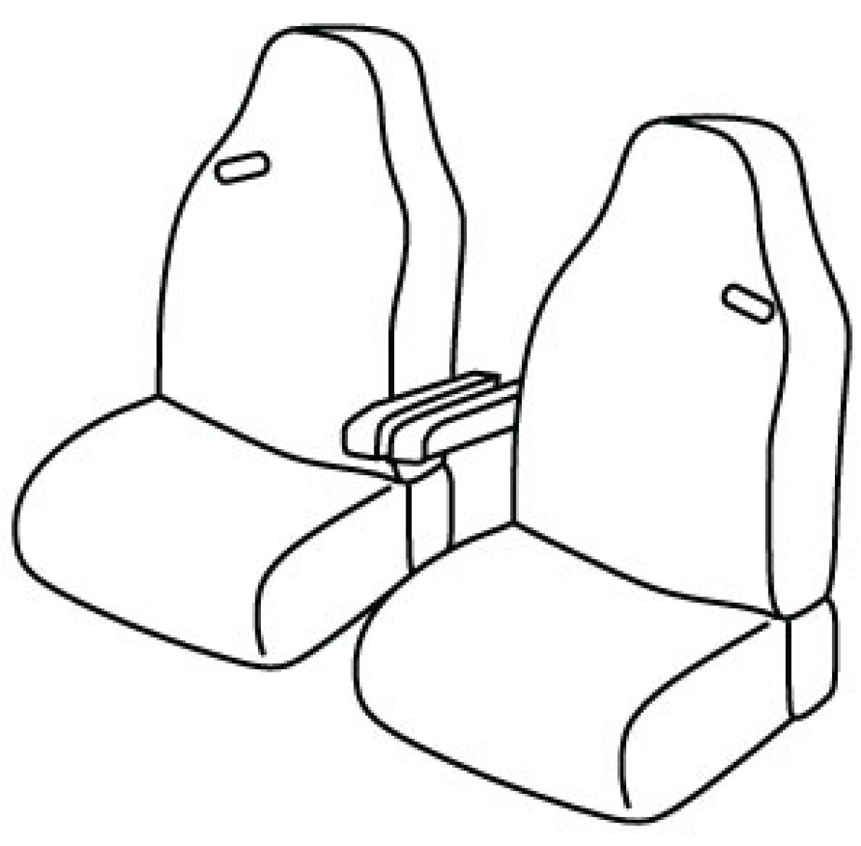 front seats in one piece with headrests, driver's seat belt in upper seat, front passenger seat belt in upper seat, front armrest connected to driver seat inside, front armrest connected to passenger seat inside