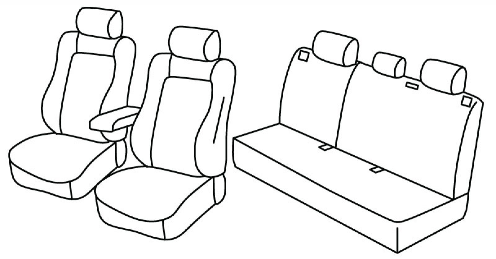 rear upper seat foldable (1/3 + 2/3), third (middle) seat belt in rear upper seat, airbag, front bottom seats normal, front upper seats sporty style, isofix not connected to seat cover, 2 versions of rear middle headrest included in set