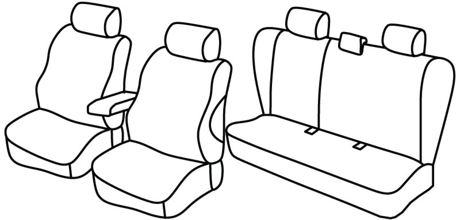 front seats normal, plastic airbag, front armrest freestanding (not connected to front seats), front headrests are normal, rear headrests 2 normal + 1 lowered, rear upper seat foldable (1/3 + 2/3), rear poles on sides, rear bottom seat in one piece (1/1)