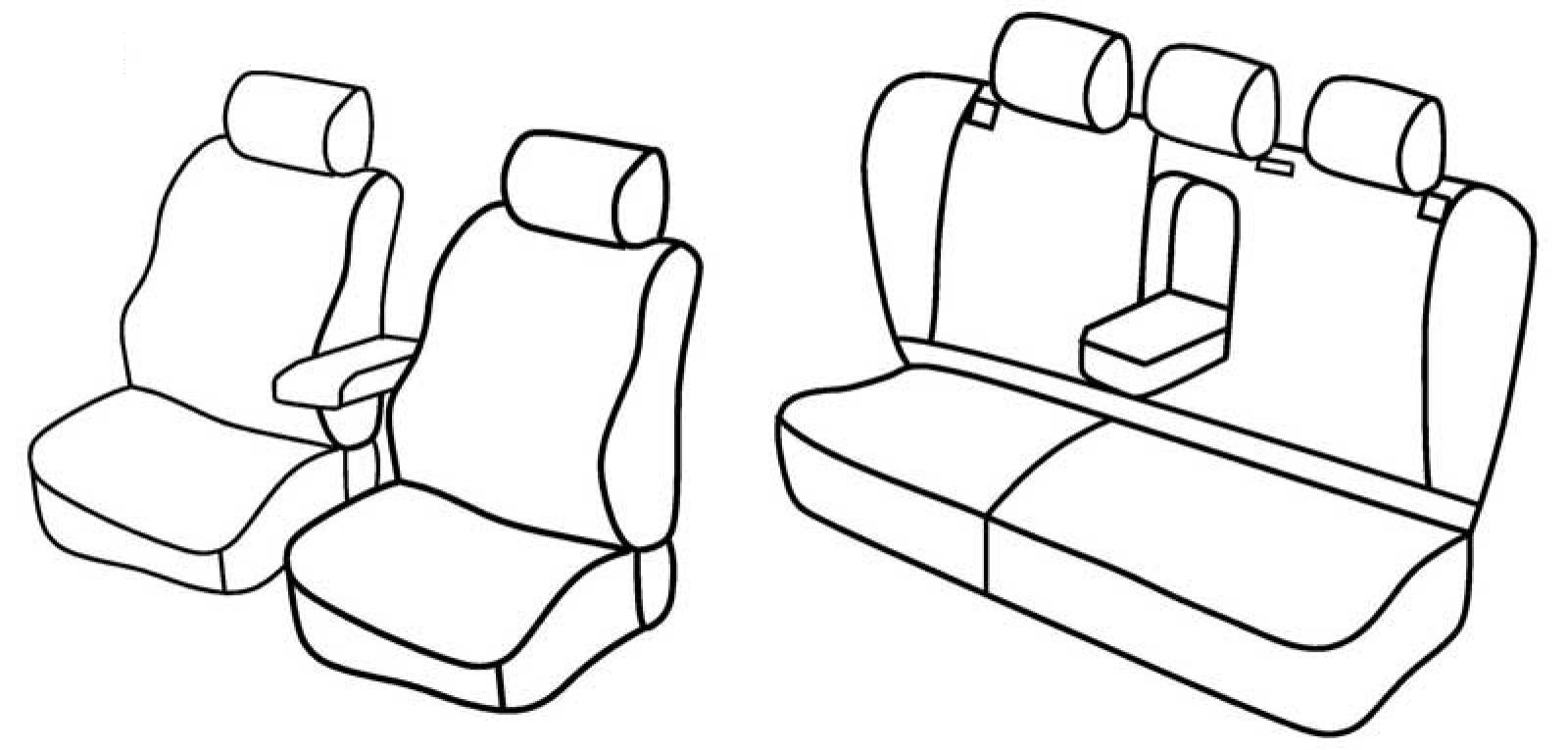rear upper and bottom seat foldable (1/3 + 2/3), rear armrest, rear poles on sides, third (middle) seat belt in rear upper seat, front armrest