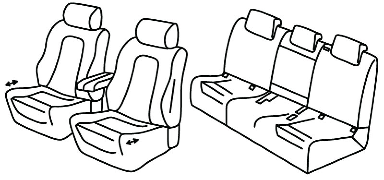 front seats ergonomic, front seats can be sliding but seat cover fits only when seat is completely pulled in, front armrest in two pieces (not covered by seat cover), front seats have plastic backside, airbag, rear upper seat foldable (1/3 + 1/3 +1/3), rear bottom seat foldable (1/3 + 2/3), rear armrest, third (middle) seat belt in rear upper seat, isofix connected to seat cover, rear headrests are lowered (2+1)