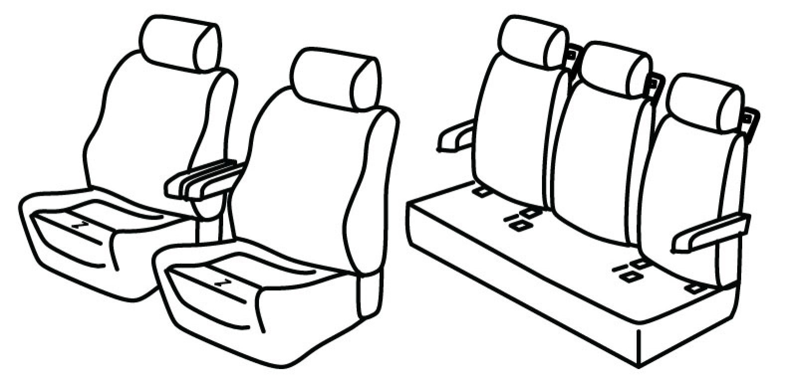 front seats ergonomic, front seats are sliding but seat cover fits only when seats are completely pulled in, 2 front armrest connected to front seats, rear bottom seat in one piece (1/1), rear upper seat foldable (1/3 + 1/3 +1/3), 3 seat belts on upper rear seats, 2 rear armrest on sides (connected to rear upper seat), isofix connected to seat cover, headrests are normal