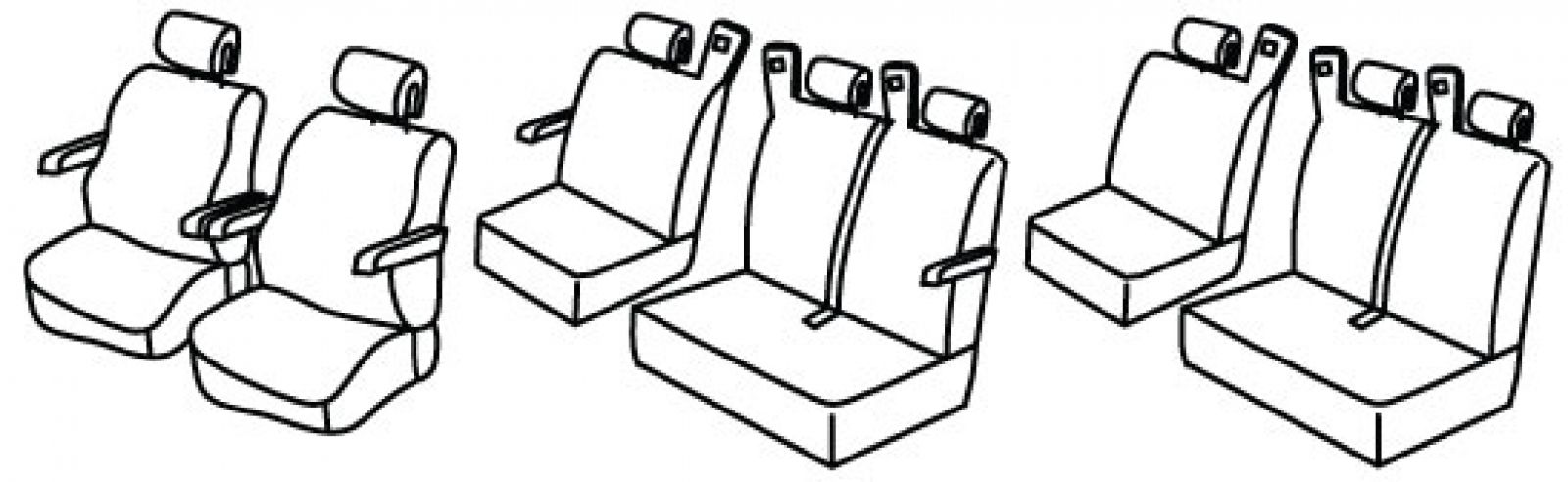 3 seat rows, 1st row: 1+1, front seats have plastic backside covered by seat cover, 4 front armrest connected to front seats, airbag, 2nd and 3rd seat row: 3 separate rear upper seats, rear bottom seat foldable (1/3 + 2/3), 2 rear armrests connected to rear upper seat in second row,headrests are foldable (sandwich)