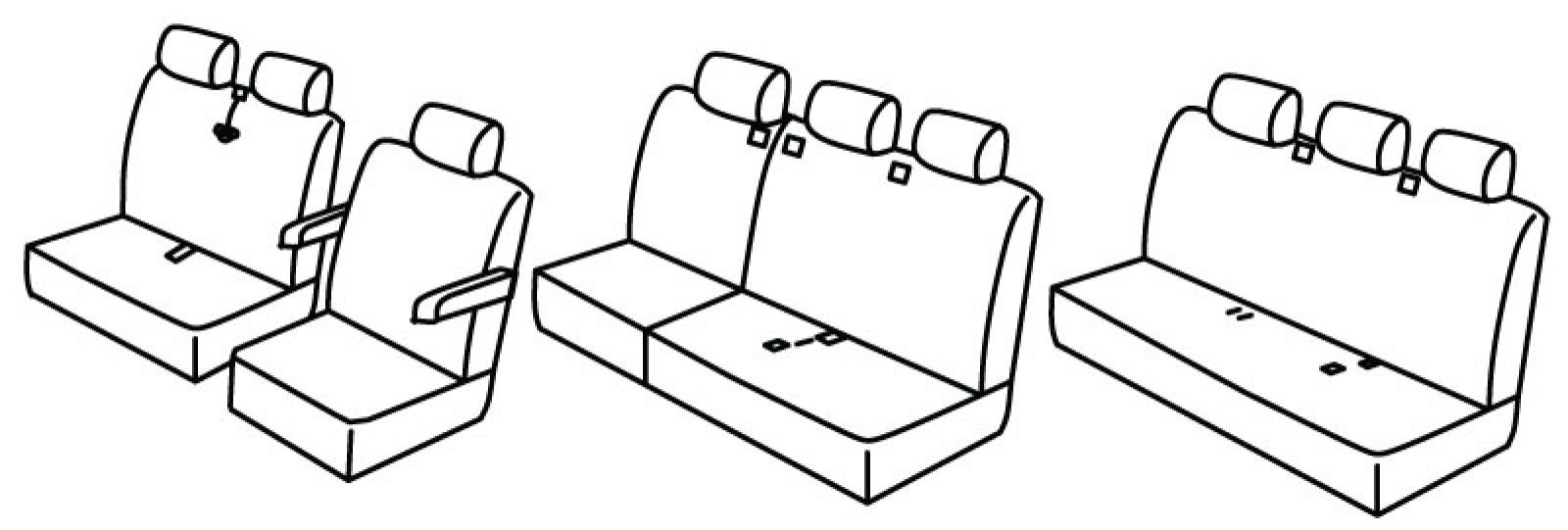 1st row:1+2, upper and bottom double seat in one piece, 2 front armrest connected to driver seat, seat belt in middle of double upper seat, 2nd row: rear upper and bottom seat foldable (1/3 + 2/3), 3rd row: rear upper and bottom seat in one piece, headrests are normal
