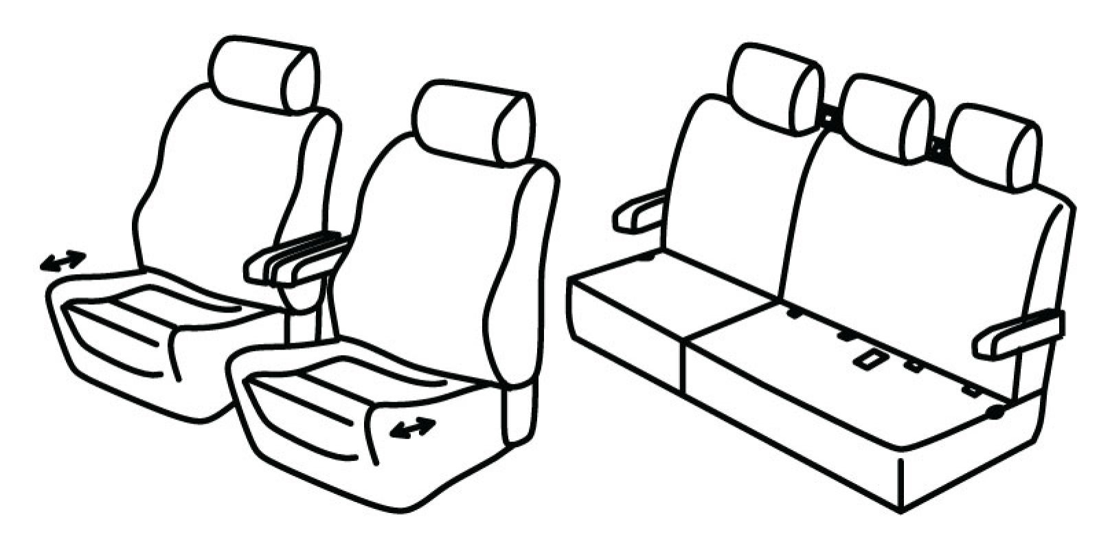 front seats ergonomic, 2 front armrest connected to front seats, front seats have plastic backside, rear upper and bottom seat foldable (1/3 + 2/3), 2 rear armrest on sides, isofix connected to seat cover, headrests are normal, 3 seat belts on upper rear seats
