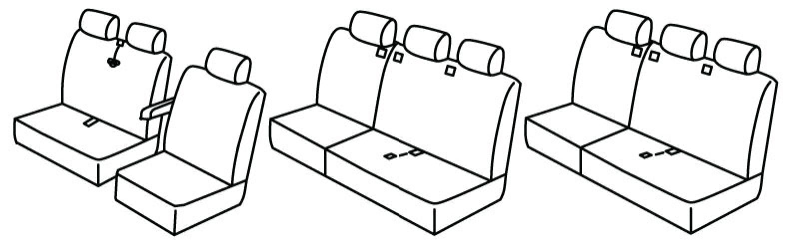 1st row:1+2, upper and bottom double seat in one piece, front armrest connected to driver seat, seat belt in middle of double upper seat, 2nd and 3rd seat row: rear upper and bottom seat foldable (1/3 + 2/3), headrests are normal