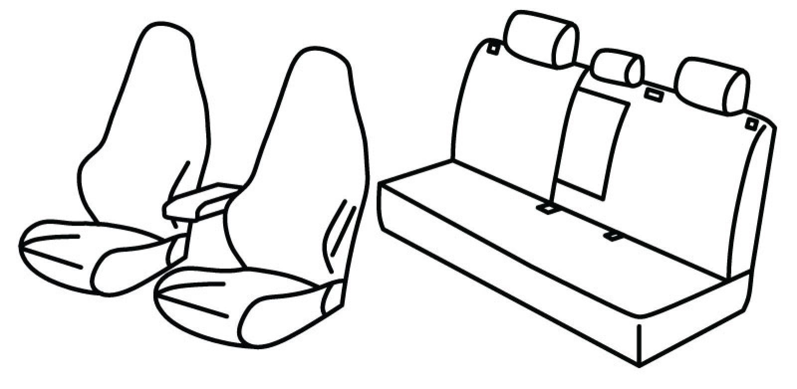front seats in one piece with headrests, front armrest freestanding (not connected to front seats), airbag, rear upper seat foldable (1/3 + 2/3), rear bottom seat in one piece (1/1), third (middle) seat belt in rear upper seat, rear armrest, rear headrests are normal (2+1)