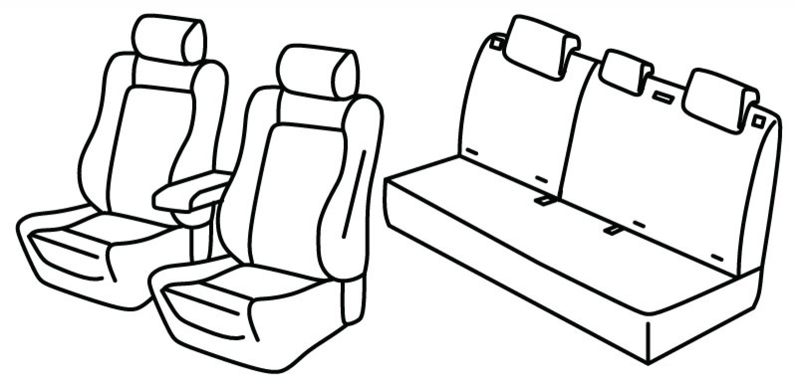 front seats sporty style, front armrest freestanding (not connected to front seats), airbag, rear upper seat foldable (1/3 + 2/3), rear bottom seat in one piece (1/1), third (middle) seat belt in rear upper seat, isofix connected to seat cover, rear headrests are lowered (2+1)