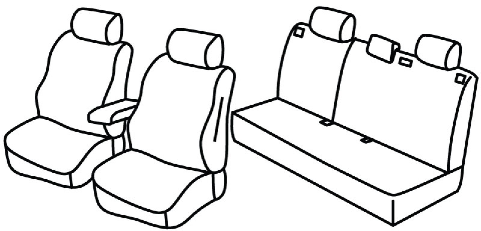 front seats normal, airbag, front headrests are normal, front armrest freestanding (not connected to front seats), rear upper seat foldable (1/3 + 2/3), rear bottom seat in one piece (1/1), third (middle) seat belt in rear upper seat, rear headrests 2 normal + 1 lowered