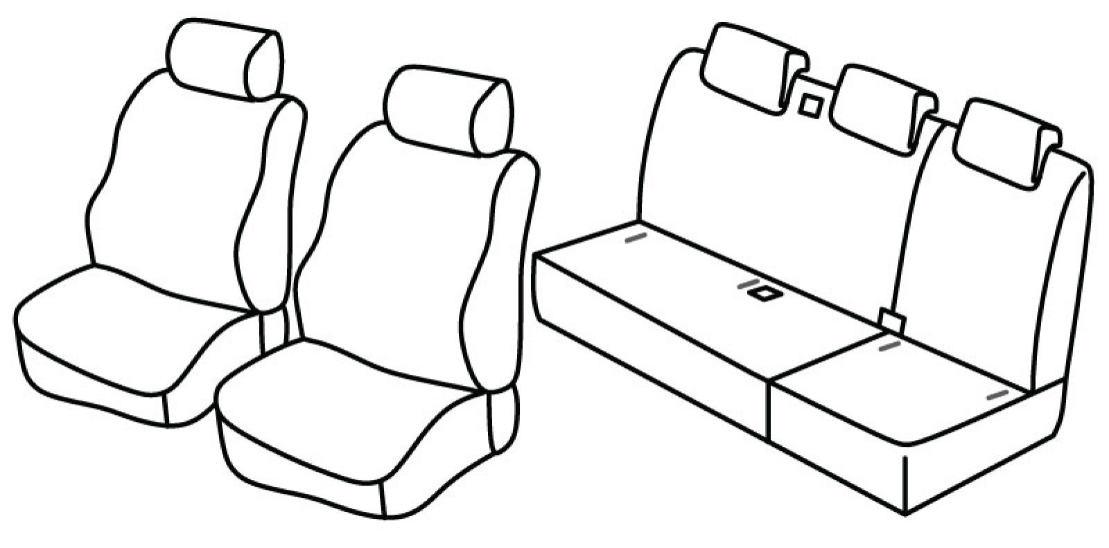 front seats normal, third (middle) seat belt in rear upper seat, rear upper and bottom seat foldable (2/3 + 1/3), isofix