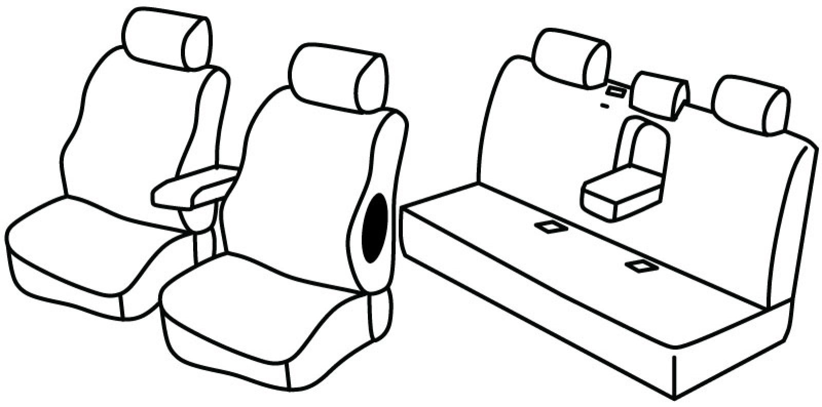 front seats normal, front armrest freestanding (not connected to front seats), plastic airbag, rear upper and bottom seat in one piece (1/1), rear armrest, in rear armrest integrated cup holder, third (middle) seat belt in rear upper seat, 5 headrests, rear headrests 2 normal + 1 lowered, isofix not connected to seat cover