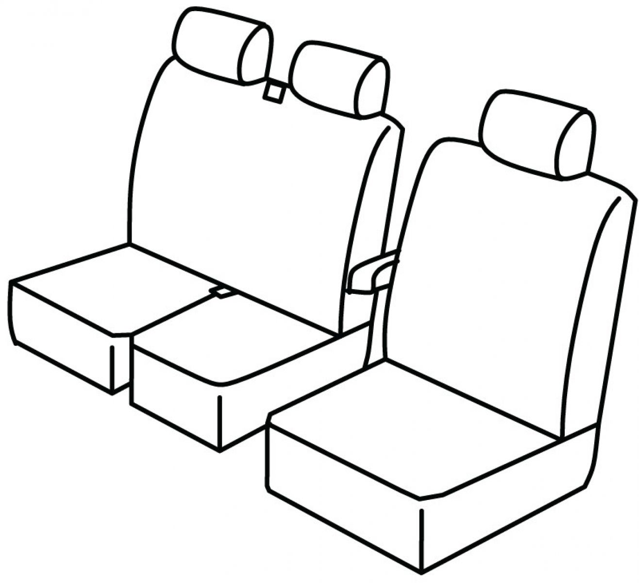 front armrest connected to driver seat, double bottom seat foldable (1/2 + 1/2), double upper seat in one piece,seat belt in middle of double upper seat