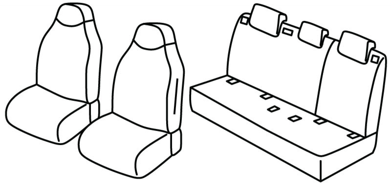 front upper seats in one piece with headrests, airbag, rear upper seat foldable (2/3 + 1/3), rear bottom seat in one piece (1/1), third (middle) seat belt in rear upper seat, isofix connected to seat cover, rear headrests are lowered (2+1)