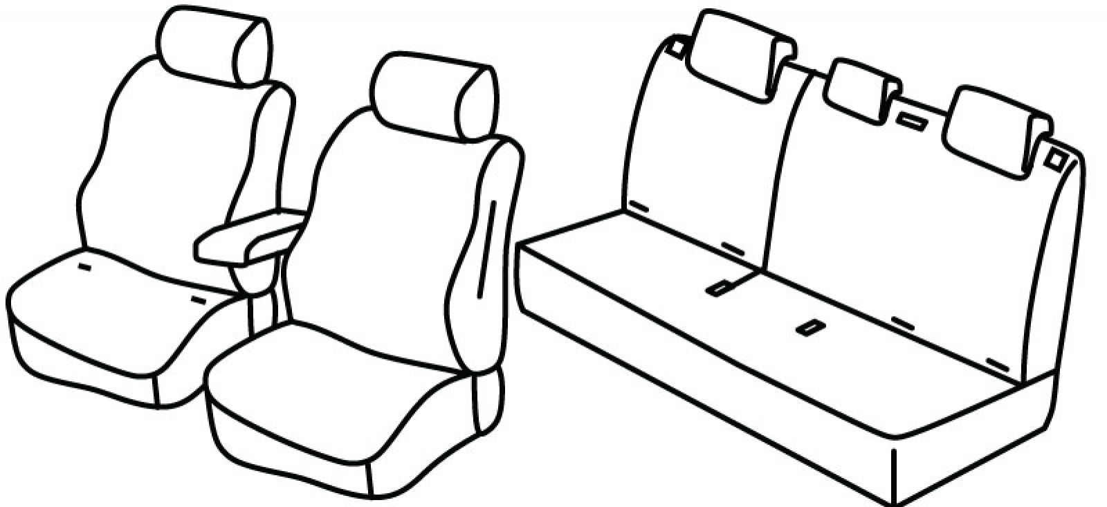 front seats normal, front armrest freestanding (not connected to front seats), airbag, isofix on front passanger bottom seat, third (middle) seat belt in rear upper seat, isofix connected to seat cover, rear upper seat foldable (1/3 + 2/3), rear bottom seat in one piece (1/1), rear headrests are lowered (2+1)