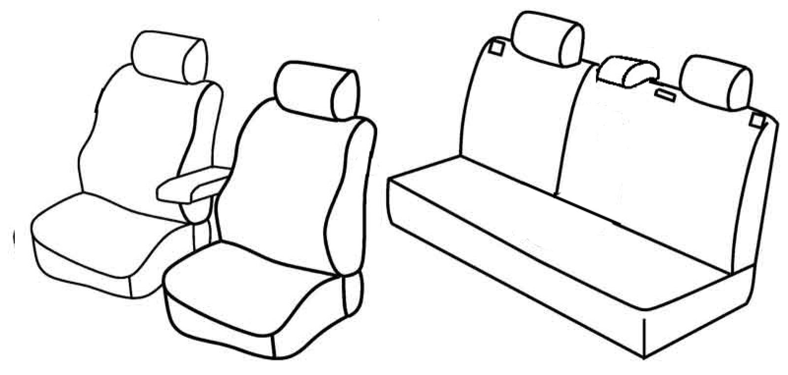 front seats normal, plastic airbag, optional front armrest (connected to driver seat), rear upper seat foldable (1/3 + 2/3), rear bottom seat in one piece (1/1), third (middle) seat belt in rear upper seat, front and rear side headrests are normal