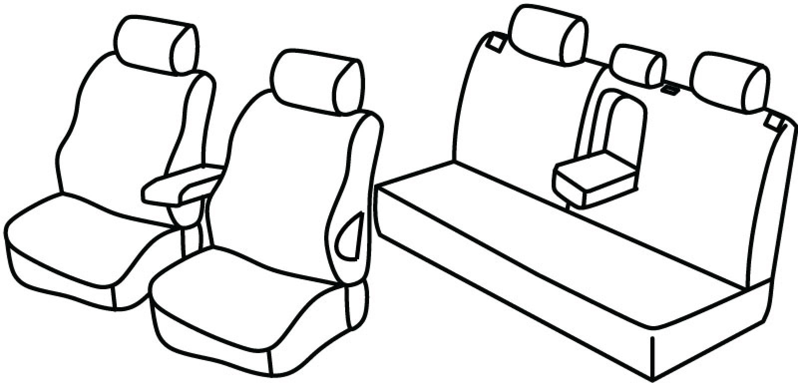 front seats normal, plastic airbag, optional front armrest (connected to driver seat), rear upper seat foldable (1/3 + 2/3), rear bottom seat in one piece (1/1), third (middle) seat belt in rear upper seat, front and rear side headrests are normal, rear armrest