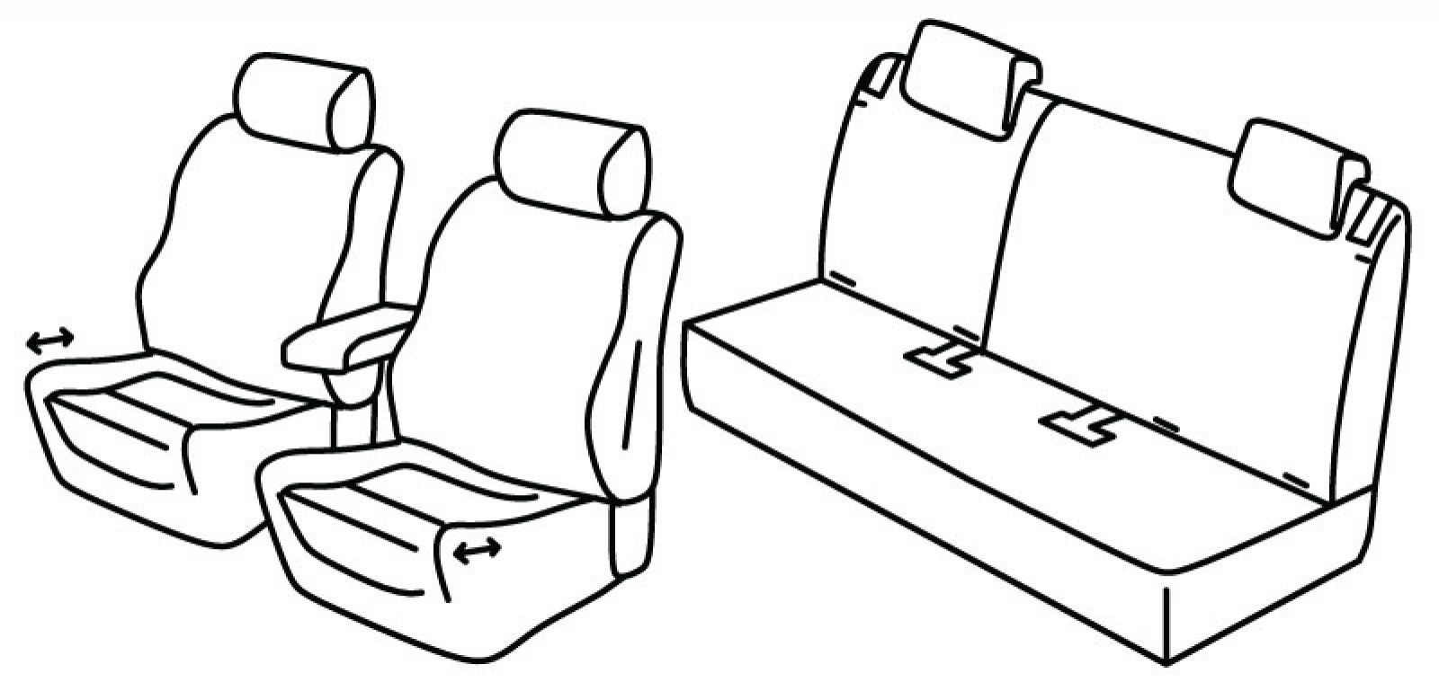 front seats ergonomic, front seats can be sliding but seat cover fits only when seat is completely pulled in, front armrest connected to driver seat, airbag, rear upper seat foldable (1/3 + 2/3), isofix connected to seat cover, third (middle) seat belt fixed to roof, rear bottom seat in one piece (1/1), 4 headrests