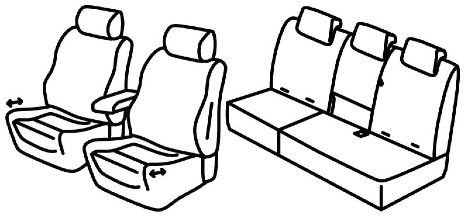 front seats ergonomic, front seats can be sliding but seat cover fits only when seat is completely pulled in, front armrest connected to driver seat, airbag, rear bottom seat foldable (1/3 + 2/3), rear upper seat foldable (1/3 + 1/3 +1/3), rear armrest, isofix connected to seat cover, rear headrests are lowered