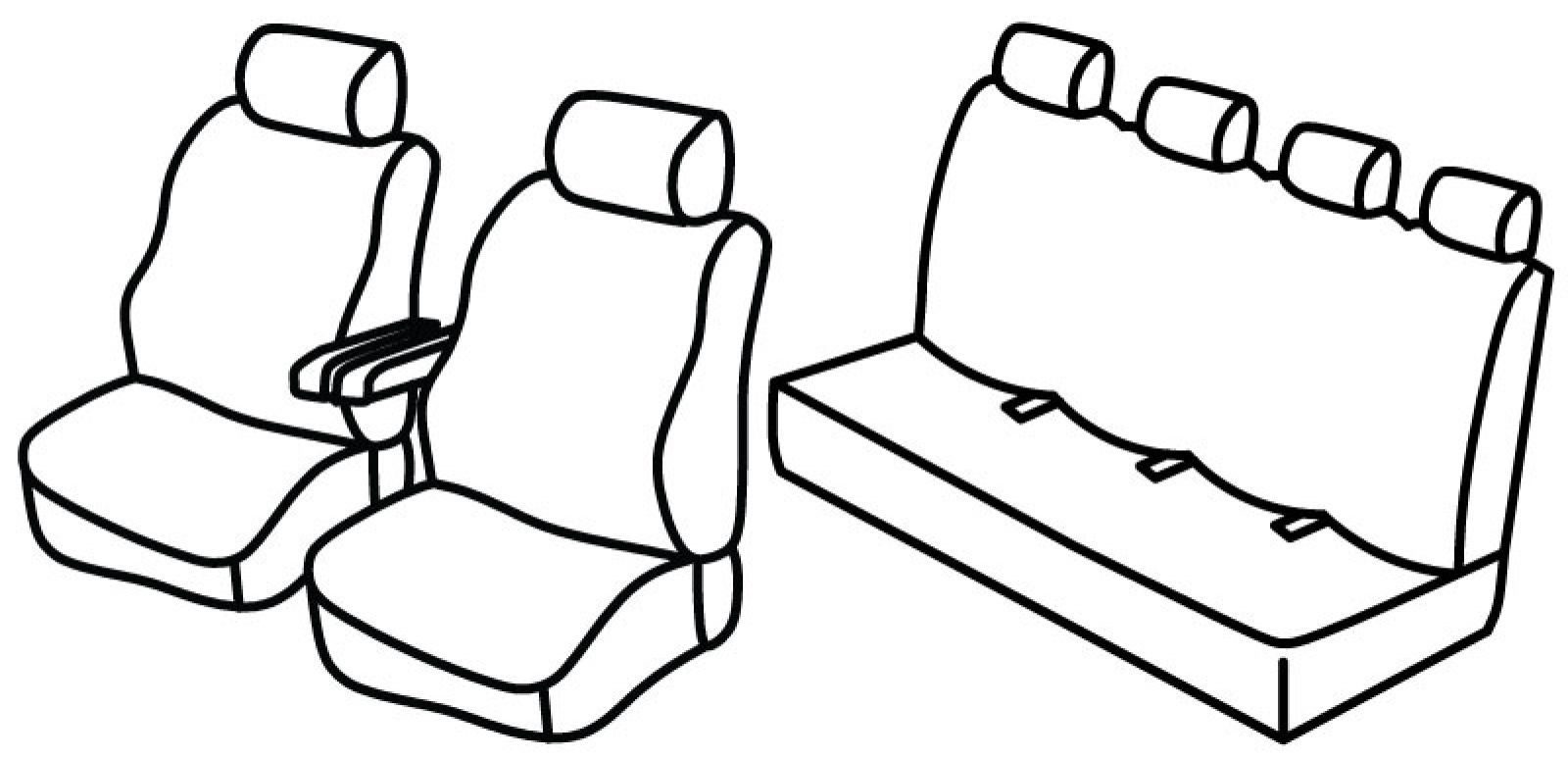 front seats normal, 2 front armrest connected to front seats, rear upper and bottom seat in one piece (1/1), headrests are normal