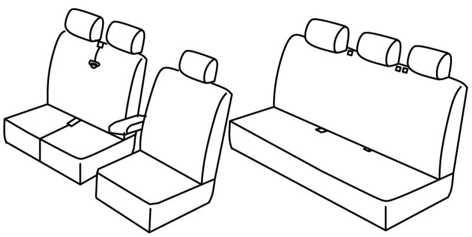 seat belt in middle of upper front passenger seat, third (middle) seat belt in rear upper seat, front armrest connected to driver seat, double bottom seat foldable (1/2 + 1/2), rear upper and bottom seat in one piece