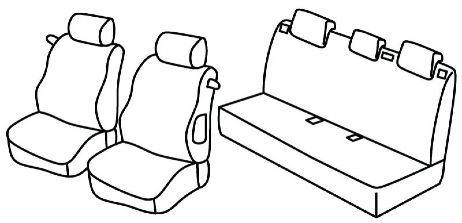 front seats normal, plastic airbag, rear upper and bottom seat in one piece (1/1), third (middle) seat belt in rear upper seat, rear headrests are lowered (2+1)