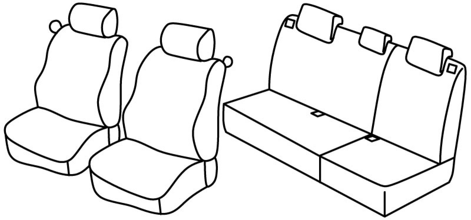 front seats normal, handles for folding upper seat in top part of seat, front headrests are normal, rear upper and bottom seat foldable (2/3 + 1/3), rear headrests are lowered (2+1), 2 holes for seat belt on rear bottom seat