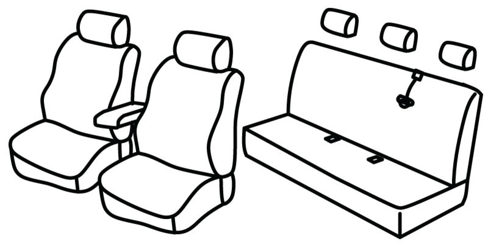 front seats normal, front armrest, front headrests are normal, rear upper and bottom seat in one piece (1/1), third (middle) seat belt in rear upper seat, rear headrest not connected to upper seat (they are fixed to trunk area)
