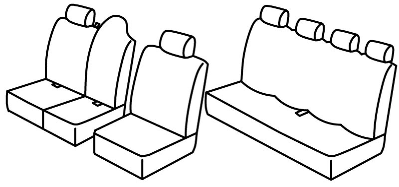 driver seat is normal, front middle passenger upper seat has plastic backside, front middle upper seat in one piece with headrests, double upper and bottom seat foldable (1/2 + 1/2), front passenger seat belt in upper seat, rear upper and bottom seat in one piece (1/1), one hole for seat belt on rear bottom seat, headrests are normal