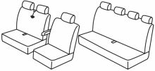 driver and front passenger seat are not the same size, driver seat can be lifted up, 2 front armrest connected to front seats, front headrests are normal, rear upper and bottom seat foldable (1/2 + 1/2), 4 seat belts on upper rear seats
