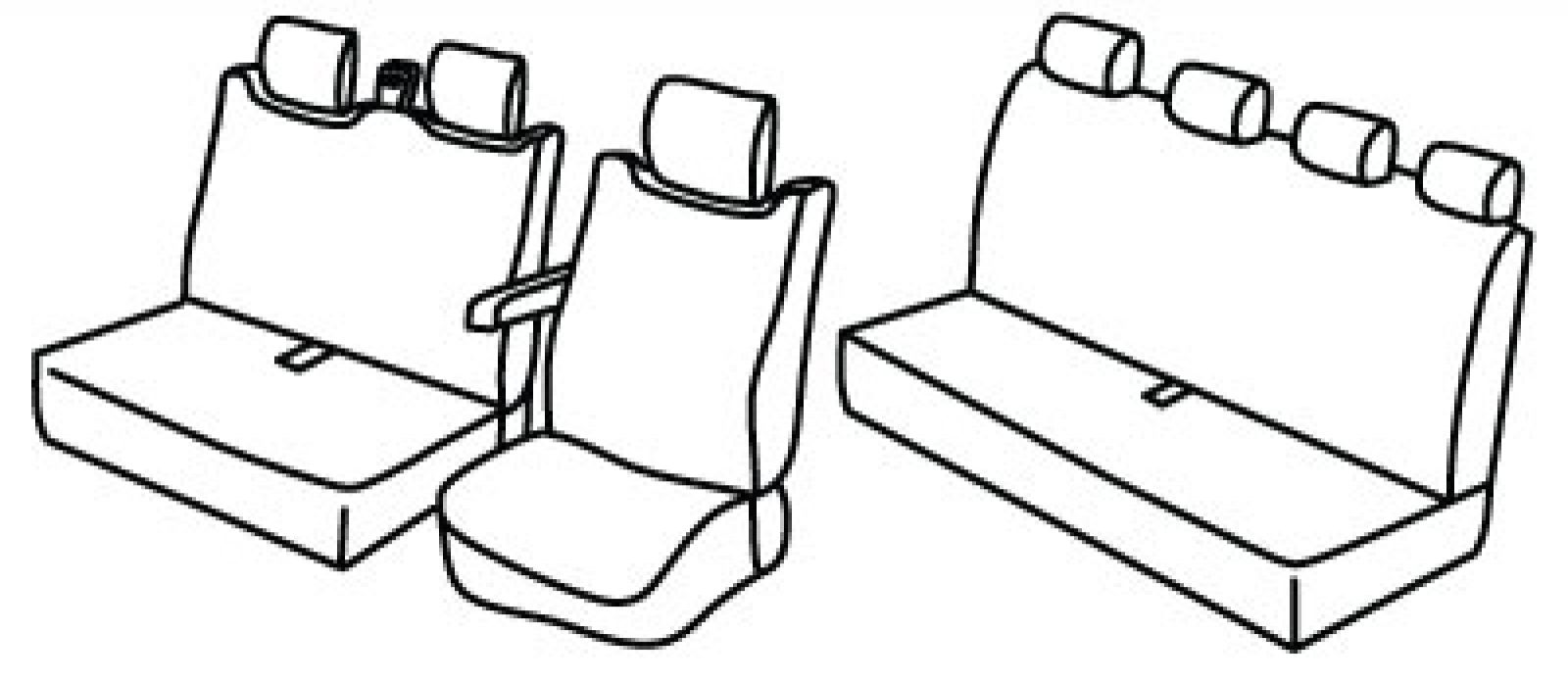 1+2, front armrest connected to driver seat, seat belt in middle of upper front passenger seat, upper and bottom double seat in one piece, rear upper and bottom seat in one piece (1/1), headrests are normal