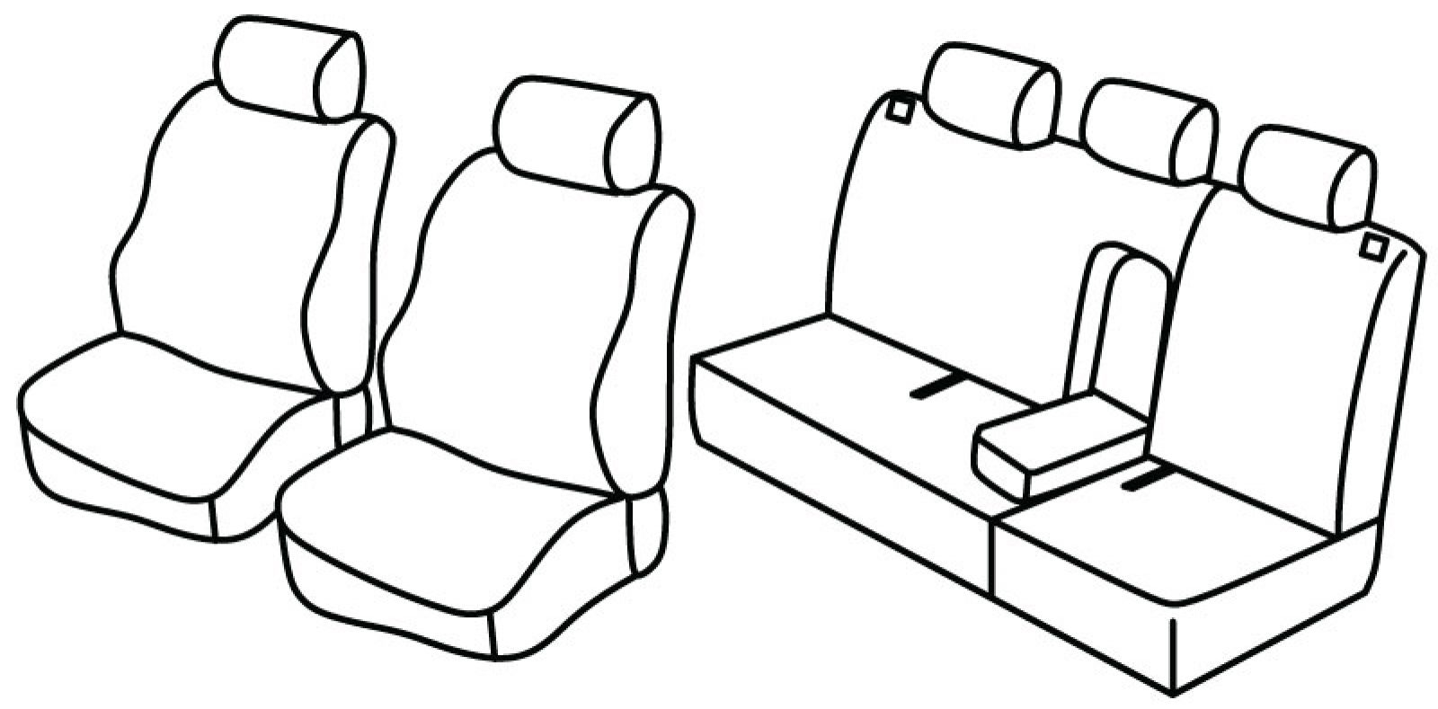 front seats normal, front headrests are normal, rear upper and bottom seat foldable (2/3 + 1/3), rear headrests are normal, rear armrest